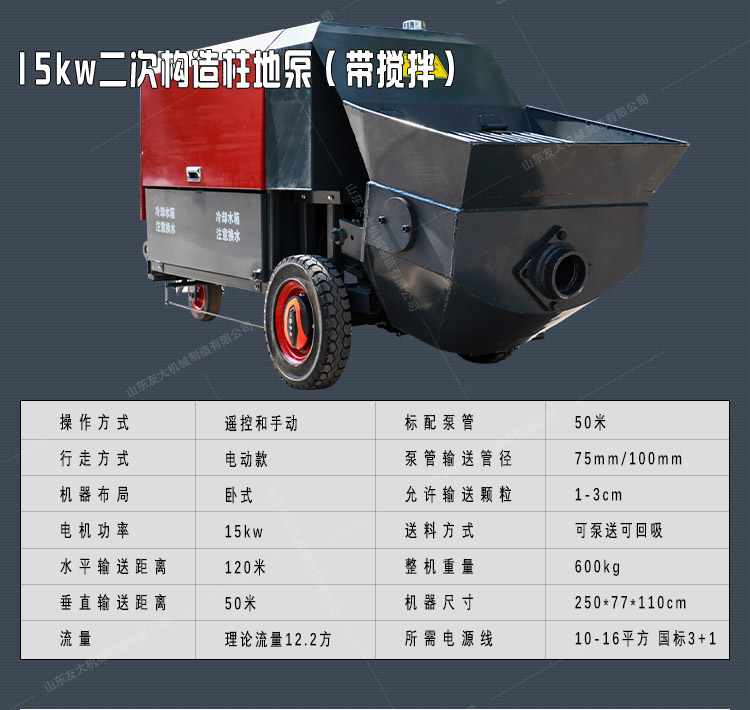 发布时间:2019-3-1925型二次构造柱专用输送泵是一种复合泵送要求的混凝土泵,通过水平或垂直安装的管道,连续输送到浇注现场的细石混凝土输送设备。